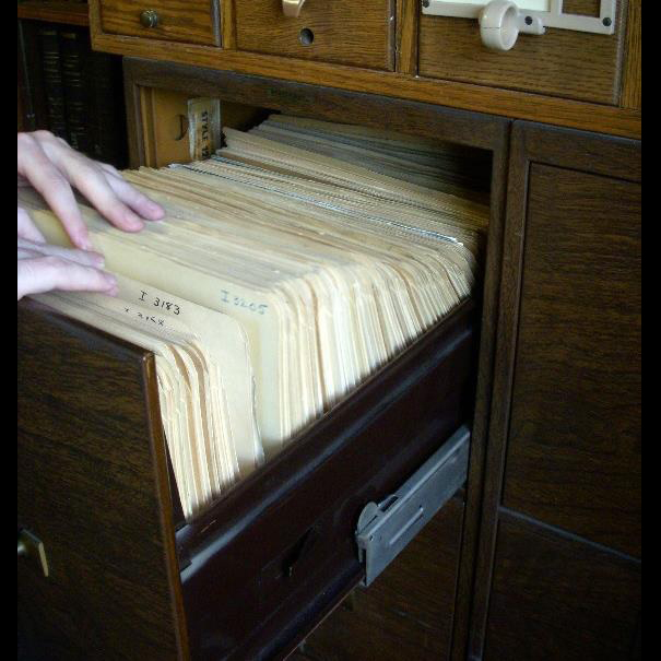 The metal cabinet beneath the card file holds larger scale photographs of the Agora inscriptions. In the images here we open a drawer and show you the contents of one folder, which include a variety of photographs and even some negatives.
